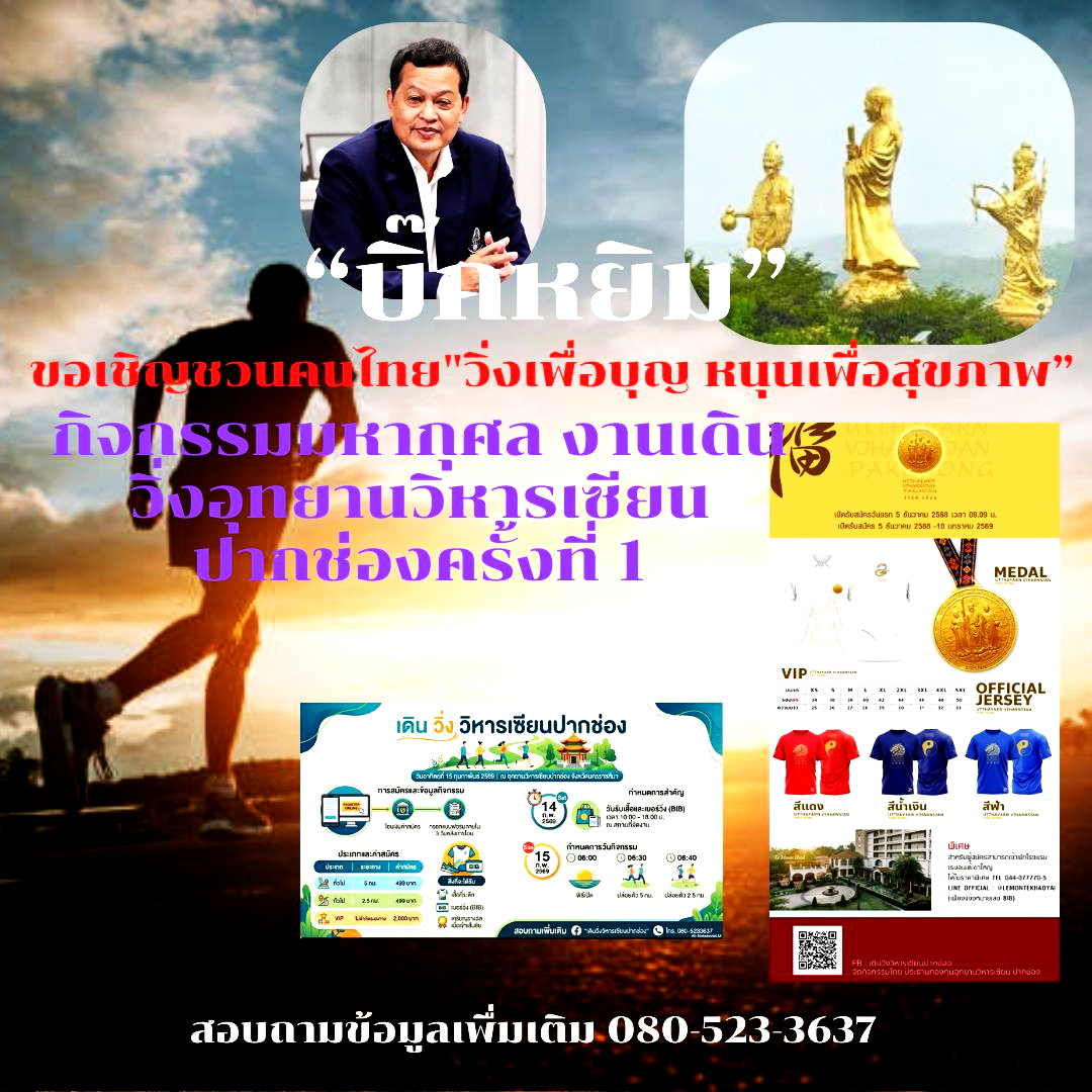 “บิ๊กหยิม”ขอเชิญชวนคนไทย"วิ่งเพื่อบุญ หนุนเพื่อสุขภาพ”กิจกรรมมหากุศล งานเดินวิ่งอุทยานวิหารเซียนปากช่องครั้งที่ 1