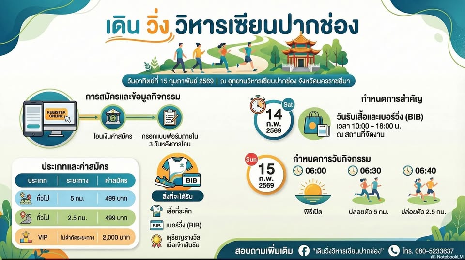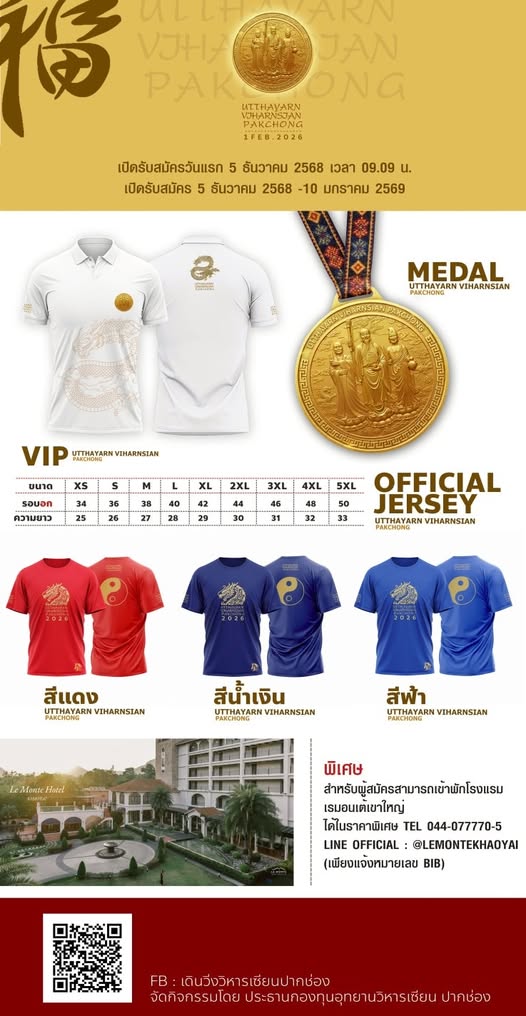 กิจกรรมมหากุศล งานเดินวิ่งอุทยานวิหารเซียนปากช่องครั้งที่ 1 รับสมัครวันนี้ -10 มกราคม 2569